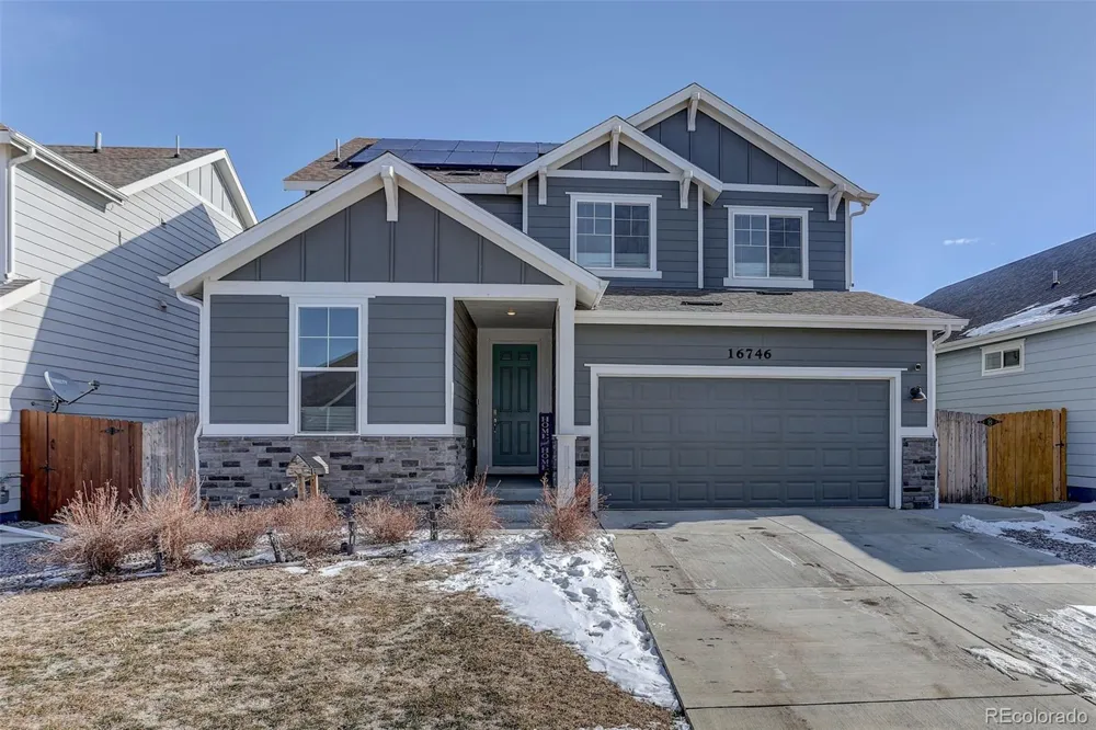 Welcome to this warm and inviting 4 bedroom, 3 bath home. A non conforming bedroom on the main level provides flexible use for work, hobbies, or guests. The remaining three bedrooms are located upstairs, offering a natural separation between living and private spaces. The main floor features an open layout that connects the kitchen, dining area, and living room for an easy day-to-day flow. Fresh interior paint, new carpet, and abundant natural light give the home a clean and refreshed feel. The updated kitchen offers generous counter space and storage, and the dining area opens directly to the backyard for convenient indoor-outdoor access. Upstairs, a spacious loft adds a versatile secondary living area suitable for a variety of uses. The primary suite includes an en-suite bath and walk-in closet, accompanied by two additional bedrooms and a centrally located laundry room. Solar panels contribute to energy efficiency. The professionally landscaped backyard features a stamped concrete patio, tiered steps with built-in lighting, and a covered gazebo, coming together to create a welcoming space that's perfect for entertaining and hosting memorable summer gatherings. The 5,542 sq. ft. lot offers ample space for outdoor enjoyment. Located near parks, walking paths, schools, and hospital, this home blends comfort, function, and accessibility in a well situated Mead community. Schedule your showing today!